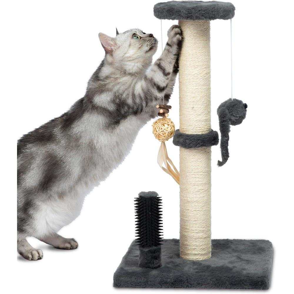 Engage and Satisfy with a Simple Tool: This scratching post for indoor cats adults blends seamlessly with toys to captivate your pet's attention for hours. It is also equipped with a brush to enable your cats to gently groom themselves. Engage your pet without complex toys or extensive interventions, addressing their needs and ensuring their happiness with a simple, effective means to improve their living environment