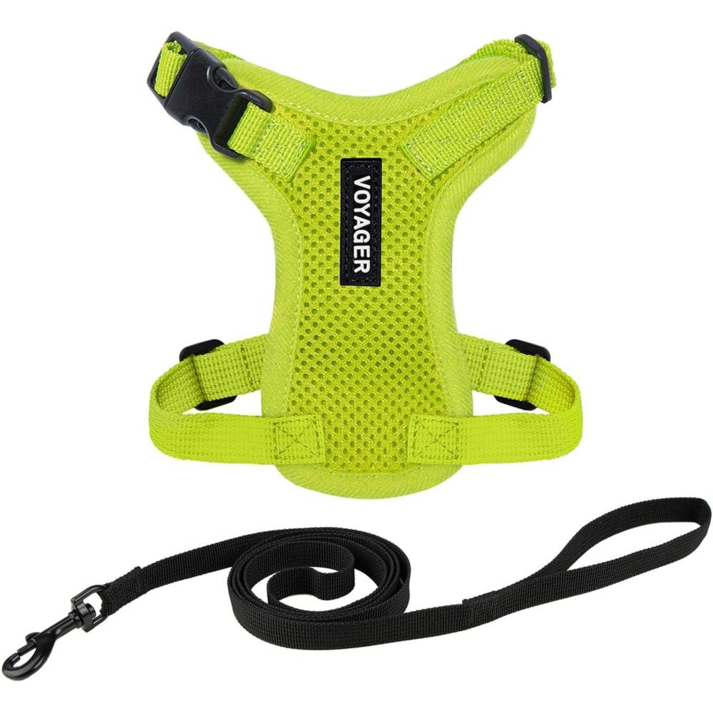 Voyager Escape-Proof Step-in Lock Cat Harness & 5ft Neoprene-Handle Leash Set All-Weather Mesh with Reflective Stitching for Small to Large Cats by Best Pet Supplies, Lavender (327), XS(Harness Leash Set (Lime Green))